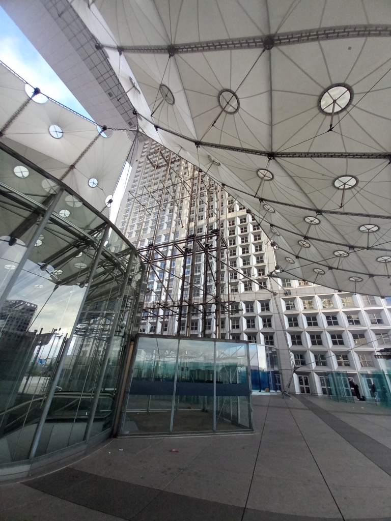 nous avons foncé en R.E.R vers la Grande Arche. Avoir vu le film de Stéphane Demoustier quelques jours avant m'a permis de découvrir ce quartier ou je n'avais jamais mis les pieds. Un horrible marché de Noël à venir empêchait de profiter de la perspective mais c'est un monument/bâtiment que j'ai trouvé exceptionnel et assez délirant. L'histoire de son architecte m'a par ailleurs profondément émue. Tout le quartier est une curiosité.