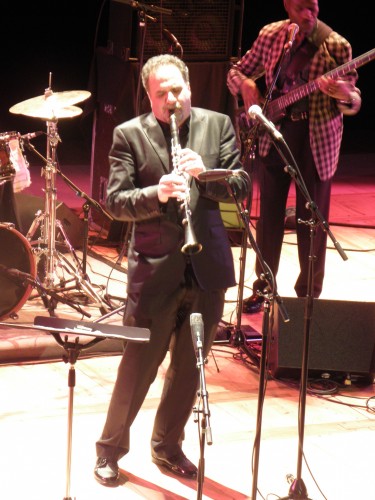 en est un des grands spécialistes. Juif américain, il s'exprime dans un français impeccable et ponctue chacun de ses morceaux d'anecdotes pleine d'humour ou d'émotion. Clarinettiste hors pair, il tire des sons invraisemblables de son instrument et d'une amplitude extravagante du plus aigü au plus sombre ! Alternant les compositions personnelles plus jazz et électro et les morceaux de pure tradition juive ashkénaze (juifs issus d'Europe Centrale et de l'Est), dans ce concert se sont succédés des moments d'une profondeur et d'une mélancolie insensées et d'autres gonflés de frénésie totalement débridée.